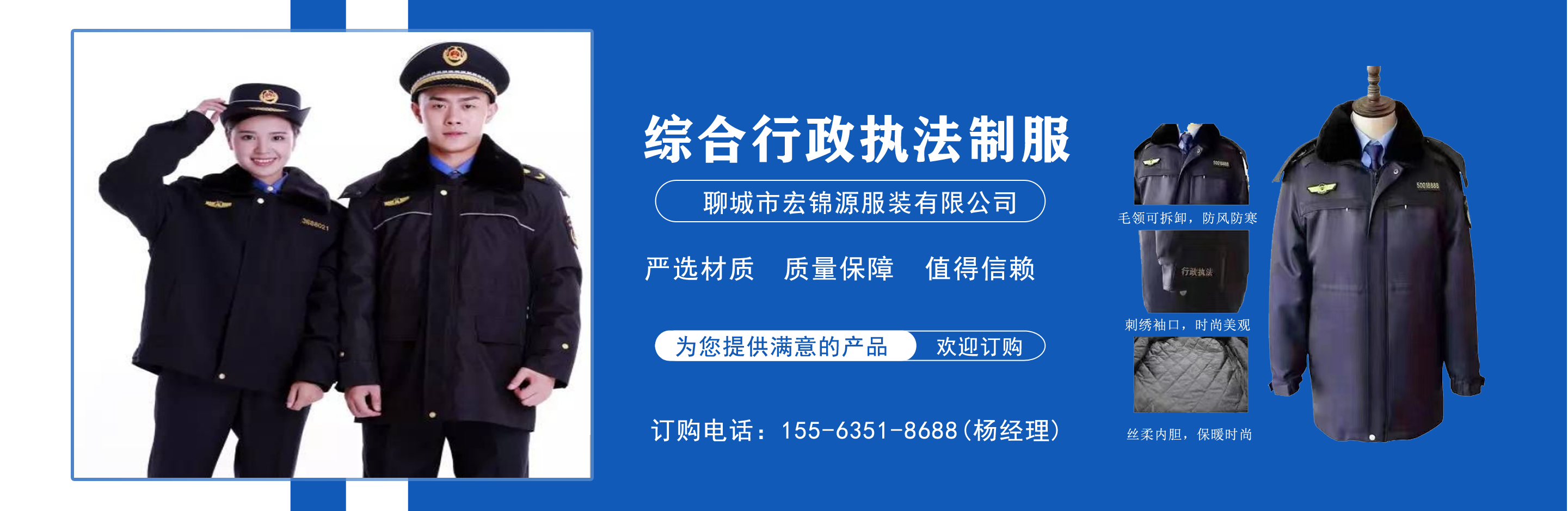 聊城市宏錦源服裝有限公司位于江北水城—山東聊城,地理位置優越,交通便利。公司主營綜合行政執法制服,交通執法服裝,應急管理執法標志服,市場監督管理標志服,農業執法服裝,生態環境保護制服,文化市場執法服,城管標志服裝廠,衛生監督制服,六部門標志服廠家等,值得信賴! 公司生產的標志服裝據有造型美、板型新、多次水洗不退色、不變型、不起泡?! 罢J真辦事,踏實做人”是宏錦源的企業精神,我們的宗旨是:“用服務與真誠來換取你的信任與支持,互惠互利,共創雙贏!”我公司愿與國內外各界同仁志士竭誠合作,共創未來企業目標:在已選定的服飾領域中,成為行業的卓越者。 經營理念:追求產品卓越,為用戶提供完美、高效的服務。...